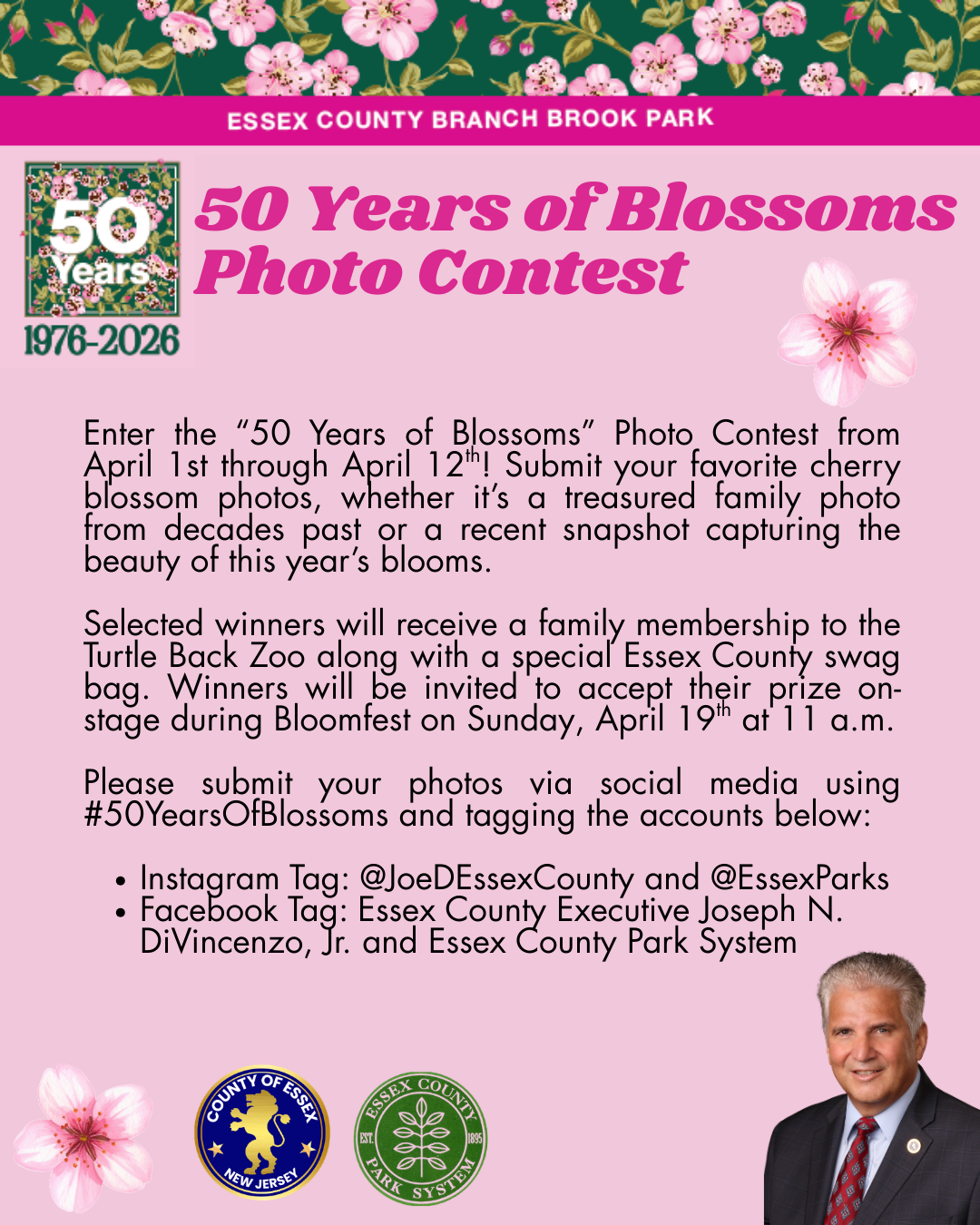 From April 1st through April 12th, residents and visitors are invited to submit their favorite cherry blossom photos, whether it’s a treasured family photo from decades past or a recent snapshot capturing the beauty of this year’s blooms. This contest is a unique opportunity to reflect on how this beloved Essex County tradition has brought generations together under the cherry blossoms.