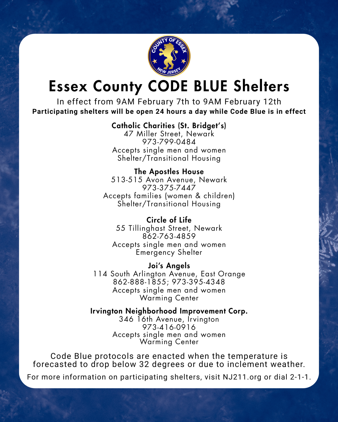 Essex County CODE BLUE Shelters